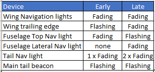 - Wing end navigation lights are fading in/out
